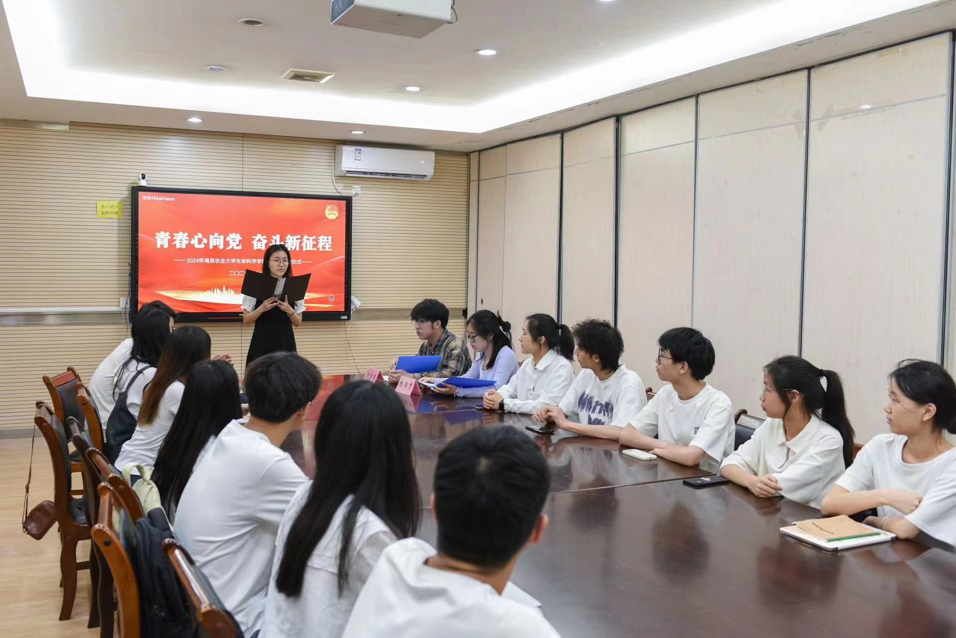 为深入贯彻习近平总书记关于青年工作的重要思想,增强共青团员的光荣感与使命感,团结带领团员青年永远跟党走。6月7日下午5时35分,南京农业大学生命科学学院团委开展“秾心向党,挺膺担当”新团员入团仪式。生命科学学院团组织负责人代表宛涛、优秀共青团员代表陈雨梦、优秀共青团干部代表朱恒睿、学生兼职团委副书记翁冰冰以及2024年生命科学学院新发展的15名团员参与本次仪式。