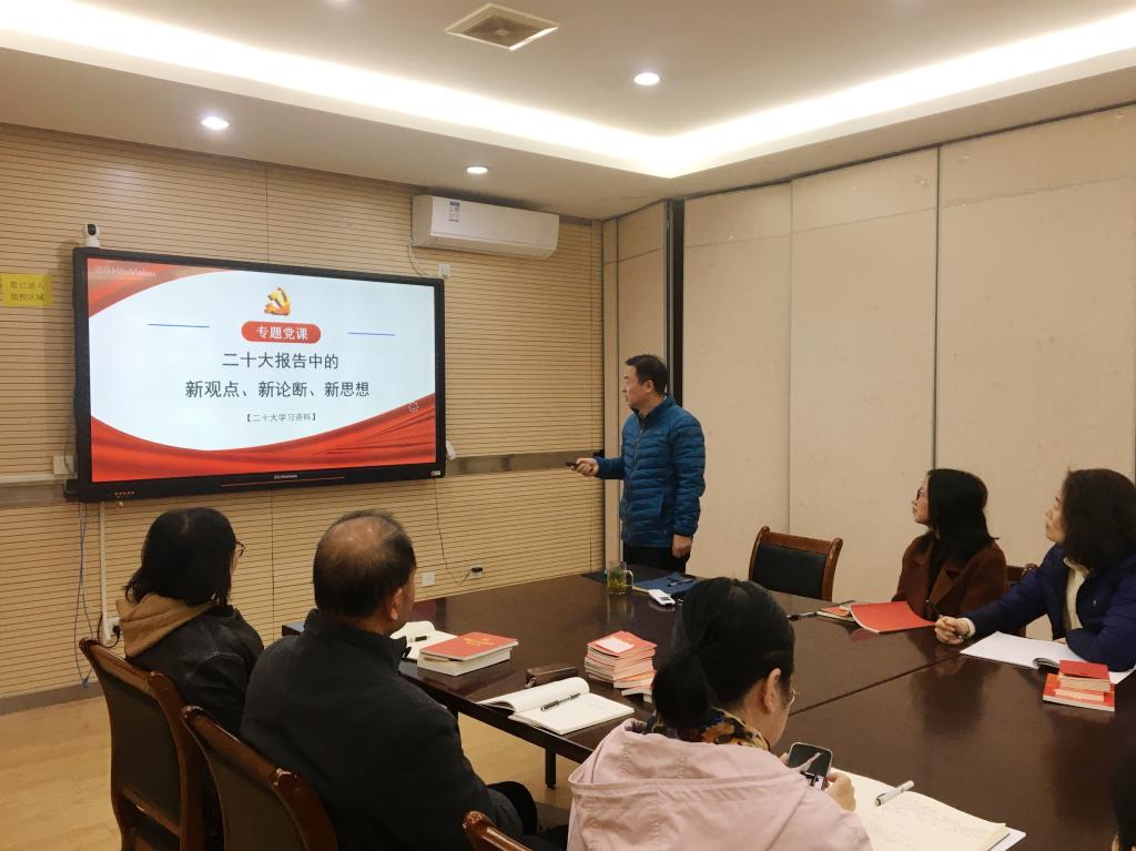 其次,赵书记对《关于进一步规范发展党员工作的通知》进行详细解读。学院党委高度重视党员发展工作,始终按照“控制总量、优化结构、提高质量、发挥作用”的方针,严格发展党员工作程序,严把关键环节,确保材料规范严谨。第三,请各学生党支部书记协助统计入党积极分子、发展对象与党员数量信息。最后,学院党委书记讲授专题党课《二十大报告中的新观念、新论断、新思想》。