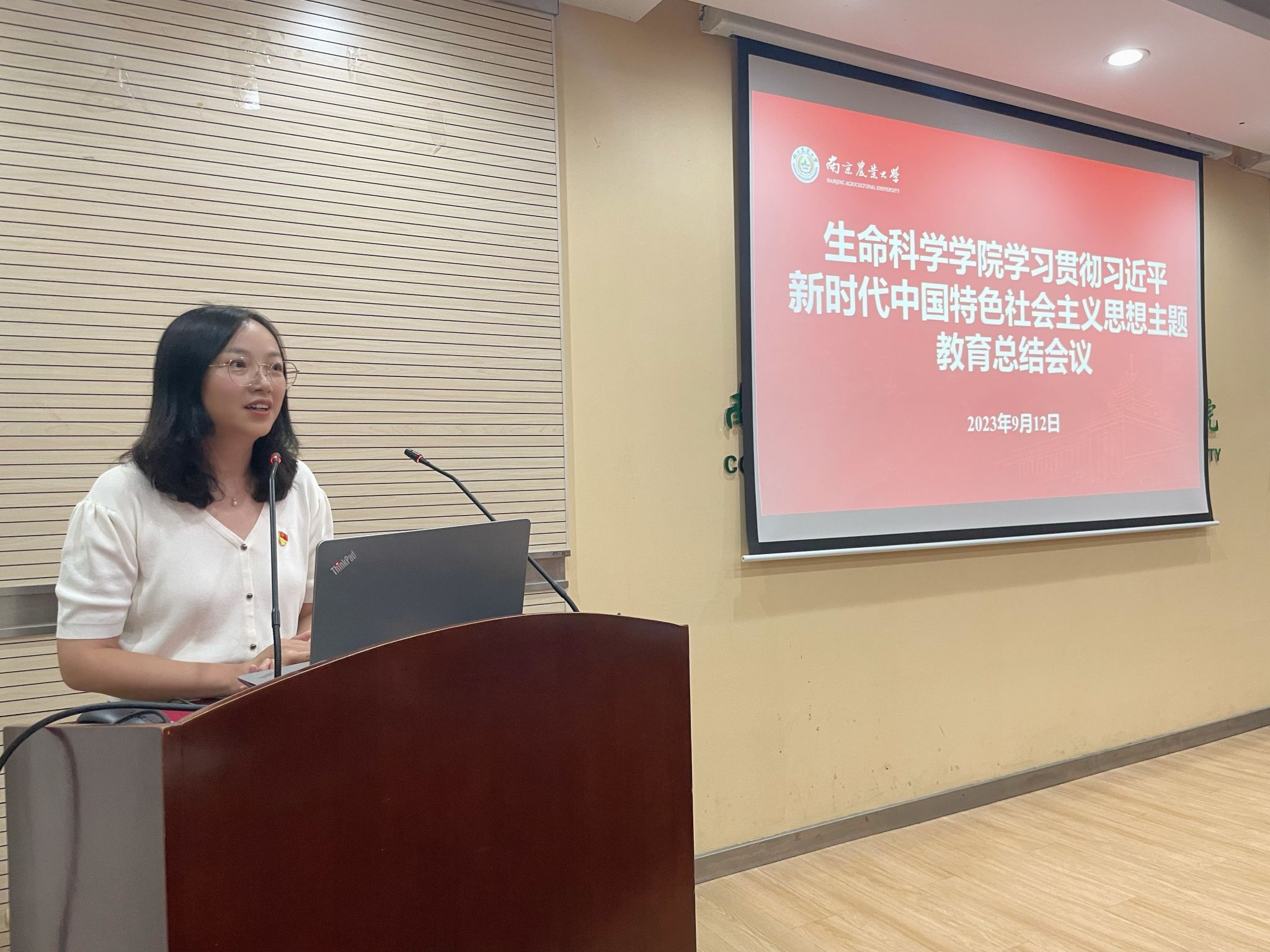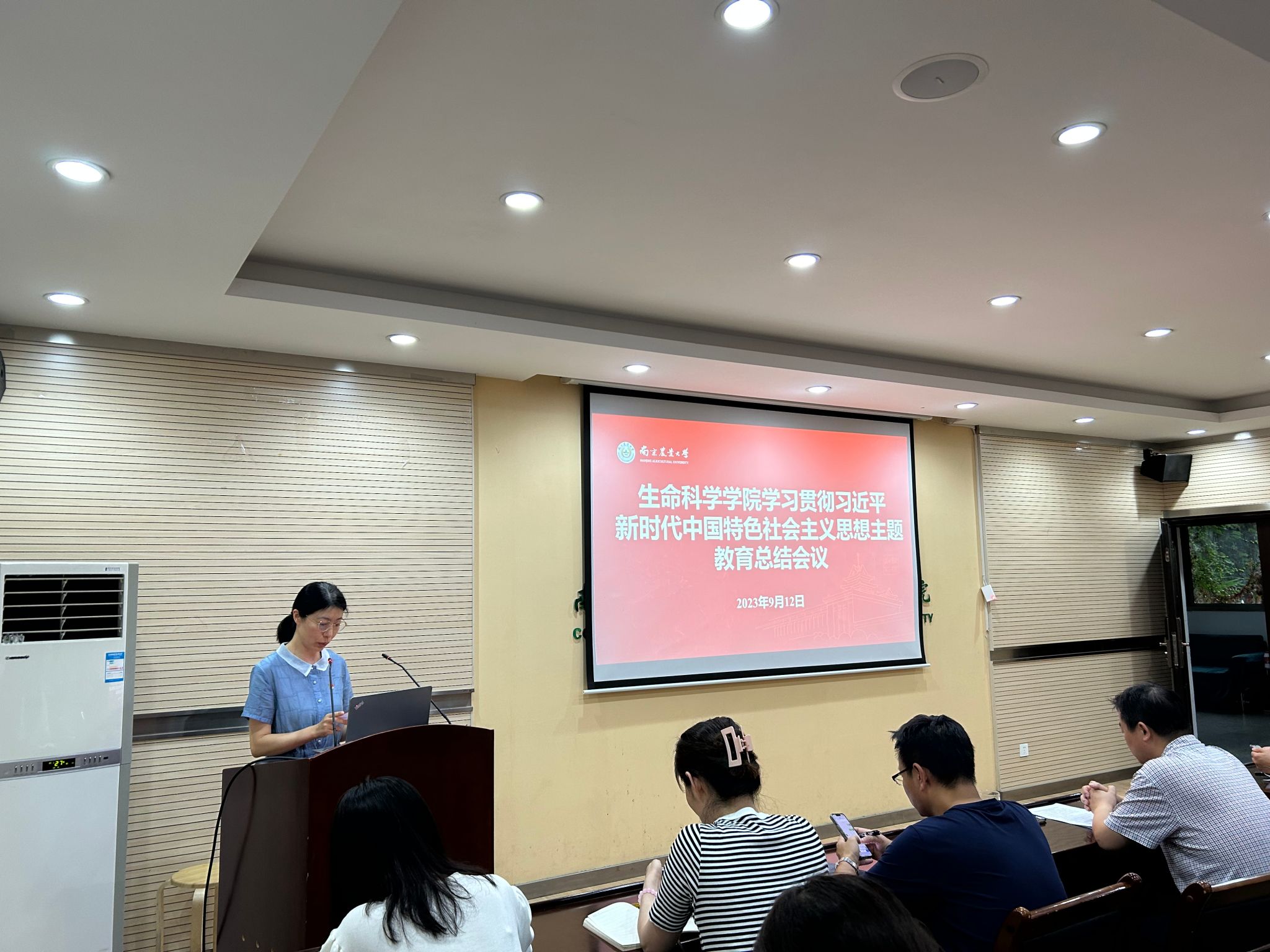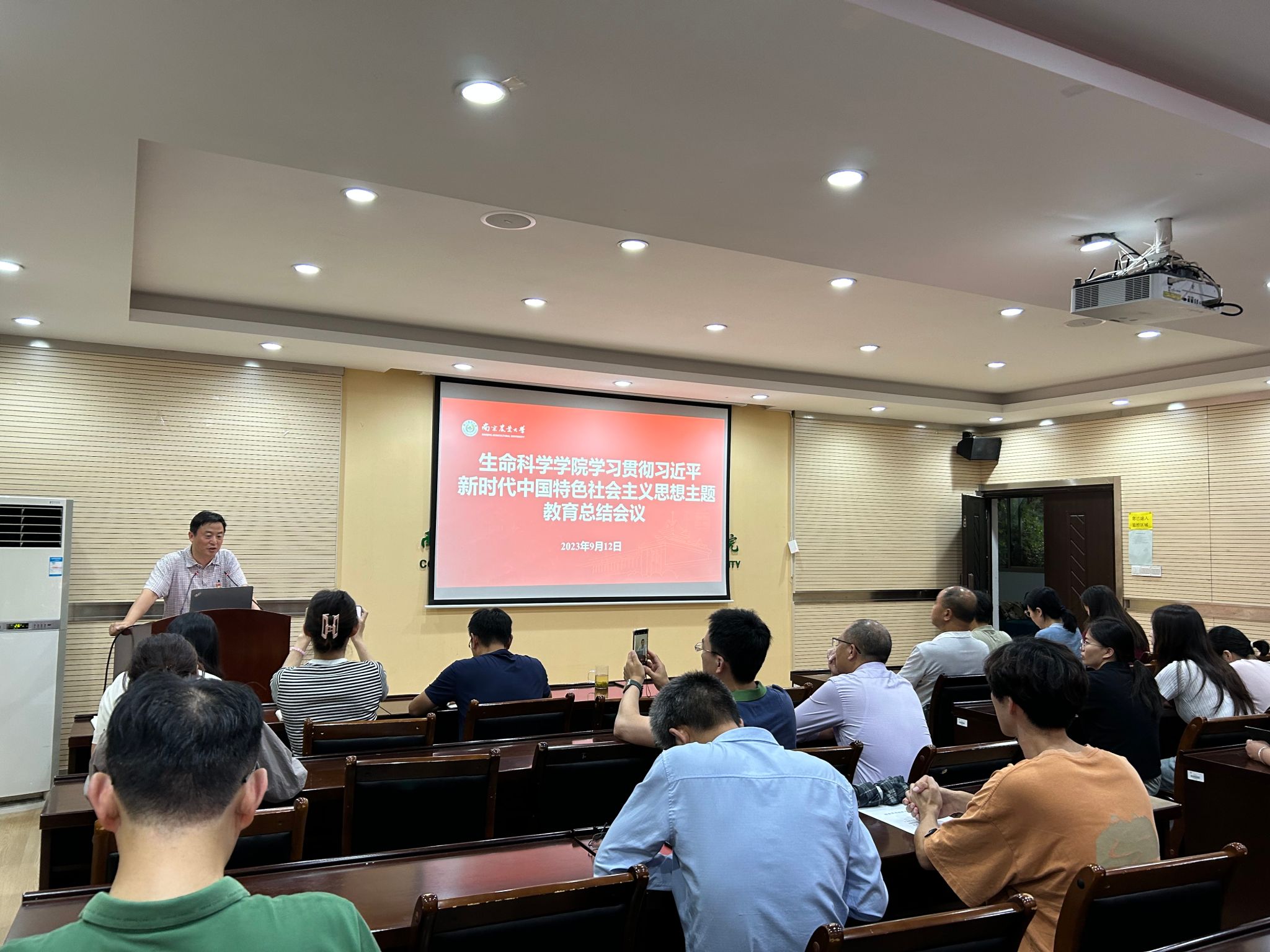 9月12日下午,生命科学学院学习贯彻习近平新时代中国特色社会主义思想主题教育总结会议在生科楼E2004召开,学院领导班子成员、党委委员、党支部书记与副书记、师生党员代表、民主党派与群众代表参会。会议由学院党委副书记李阿特主持,教师五支部书记何琳燕作为代表交流支部主题教育成果与经验分享,党委书记赵明文全面总结学院主题教育开展情况,对进一步巩固和深化主题教育成果作出安排部署。