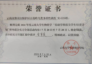 经过一周的认真学习和观测,同学们将数据收集整理,做成了兼具科学性和趣味性的汇报材料。在云南大学生科院报告厅总结大会上,鸟组的工作和汇报得到全体老师的好评,荣获一等奖。此次实习为拔尖基地同学们提供了一次宝贵的学习和实践机会,培养了对自然博物的兴趣和科学研究的热爱。