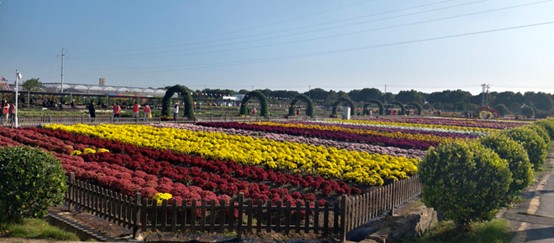 随后,同学们跟随颜利萍老师的脚步,来到了露天花海展区。上万株菊花在大地上铺成一片美丽的菊花海洋:红的似火,粉的如霞,白的若雪,黄的赛金;有的端庄大方,有的小巧玲珑有的层层叠叠,有的一枝独秀;每一朵都像是一位优雅的仙子,在飒飒西风中傲立枝头。正应了那句“秋菊能傲霜,风霜重重恶。本性能耐寒,风霜岂奈何?”的诗句。据颜老师介绍,露天花海展区展示的菊花品种都是由南京农业大学菊花育种团队自主培育的金陵系列品种,共19个品种,约19500株;该系列品种具有花期早、植株低矮、株型紧凑、花色丰富、花朵繁多、耐粗放管理等优点。