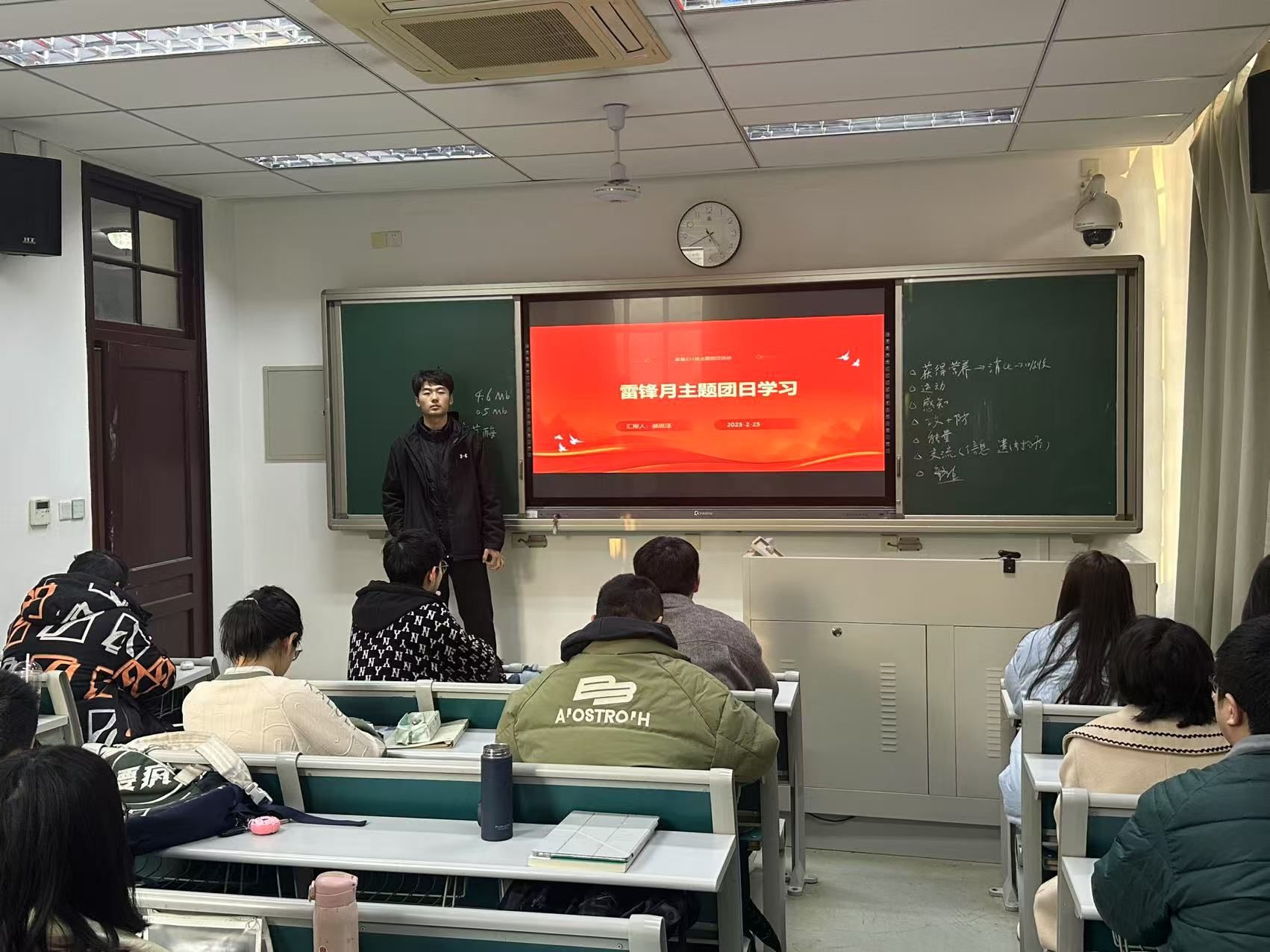 2025年2月25日下午,拔尖基地231班的同学在团支书郝恩泽同学的带领下在主楼231教室里举行了雷锋月宣传活动班会。本次活动以视频,PPT的方式向同学们进行了宣传,带领同学们一起了解雷锋,学习雷锋精神。雷锋心中有爱,爱党,爱国,爱人民,心里永远装着别人,全心全意无私奉献。在其短暂的生命中,他始终用快乐与感恩诠释着对“善”的追求与执着。雷锋精神是新中国成立以来无时无刻不在熏陶鼓舞中国人祖祖辈辈的做人法则,深入贯彻了以爱国主义为核心的团结统一爱好和平勤劳勇敢自强不息的伟大的民族精神,中国梦的实现,需要雷锋精神才能在两个百年之际怦然落地。雷锋精神是一种善的境界。三月春风暖人心,雷锋精神伴我行,同学们应向雷锋同志学习,将雷锋精神代代传承下去。