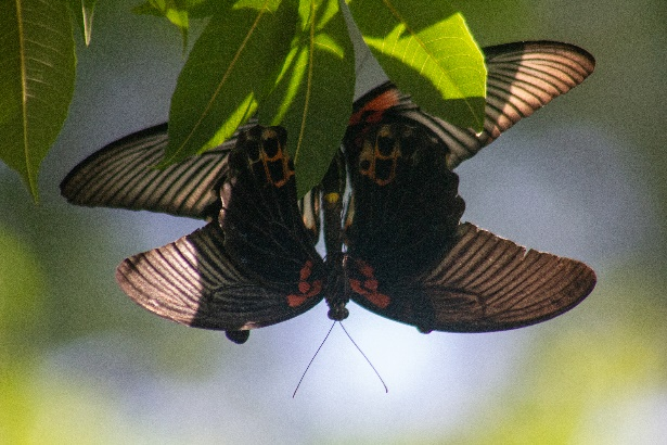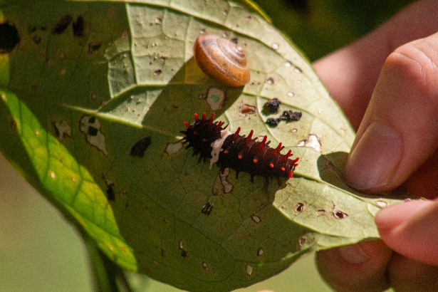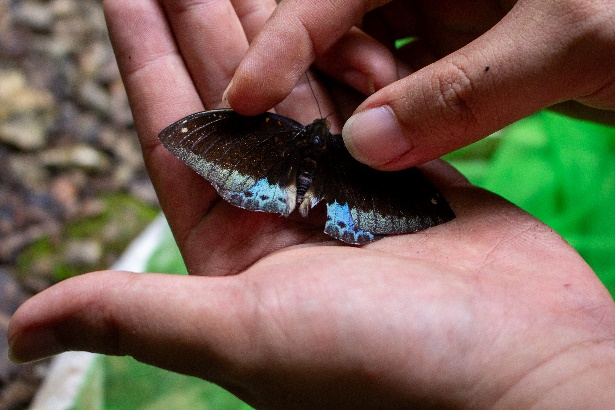 在探寻保护区内鳞翅目类群生物多样性的过程中,同学们观察到了绿裙玳蛱蝶、斜带环蝶、素饰蛱蝶、小豹律蛱蝶、绿弄蝶、三点桠灰蝶、丽蛱蝶、小纹青斑蝶等数十种野生的蝶类和蛾类,认识到了蝶类和蛾类的区别,并且拍摄到了罕见的美凤蝶交配过程和栖息在马兜铃上的红珠凤蝶幼虫。新奇而幸运的经历丰富了同学们的认知,让同学们对于美妙的昆虫世界有了更深的理解。