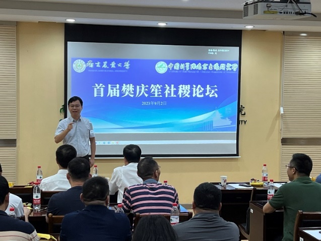 为纪念著名农业微生物学家、中国农业微生物学开创者之一樊庆笙先生诞辰112周年,进一步弘扬科学家精神和赓续传统友谊,由南京农业大学生命科学学院和中国科学院南京土壤研究所土壤生物与生物化学研究室共同发起的首届“樊庆笙社稷论坛”于2023年9月2日在南京农业大学生命科学学院成功召开。中国科学院南京土壤研究所原党委书记林先贵研究员、中国科学院南京分院四级高管尹睿研究员、中国科学院南京土壤研究所土壤生物与生物化学研究室主任褚海燕研究员和南京农业大学生命科学学院院长蒋建东教授、农业农村部农业环境微生物重点实验室主任崔中利教授等50余位专家学者和研究生出席论坛。