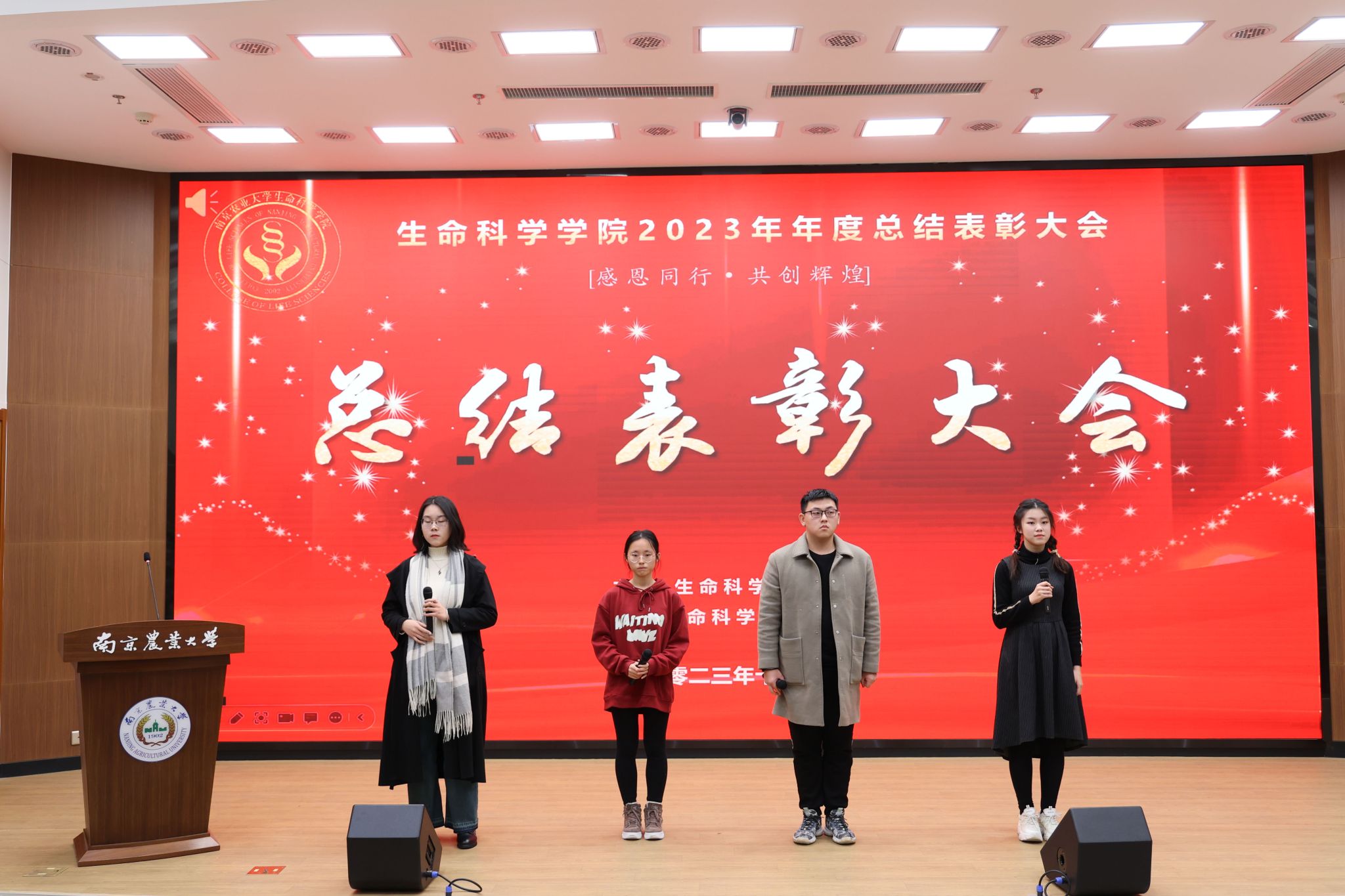 至此,生科院2023年年度总结与表彰大会圆满结束。本次大会不仅是对过去一年工作的总结和表彰,更是对全体优秀成员的激励和鞭策。相信在未来的日子里,生科院的莘莘学子学子将继续发扬优良传统,不断开拓创新,为推动生科院的发展做出更大的贡献。