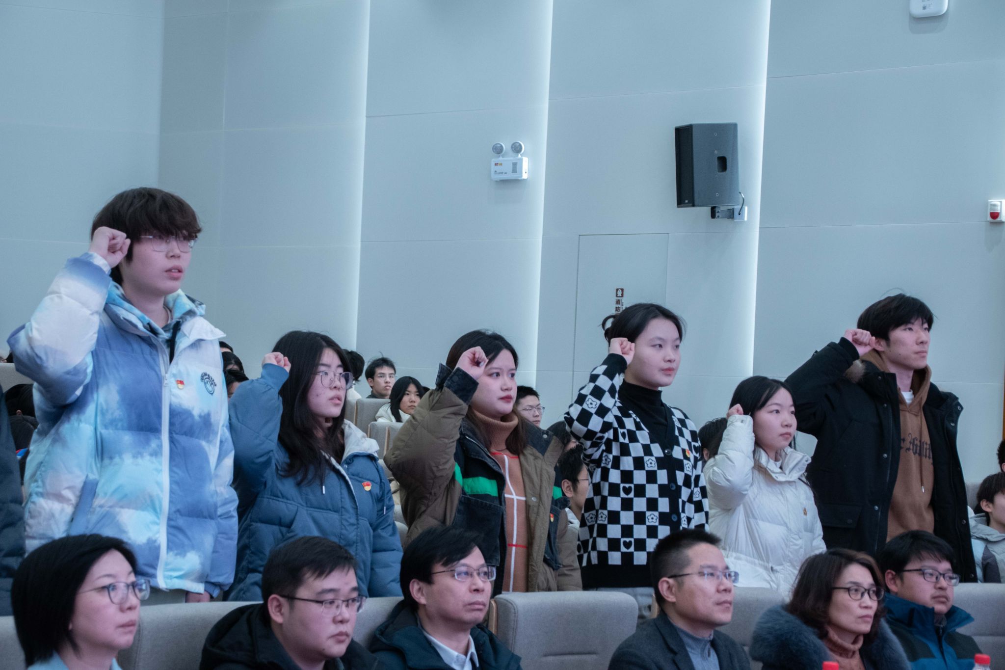 在党务建设篇章中,大会先是对生科院党建工作做出简要总结,用详实的数据有力地展示了一年来我院党建工作取得的巨大成就。接着,领誓人张悦和许惠龙带领七名转正的党员举行了入党宣誓仪式。