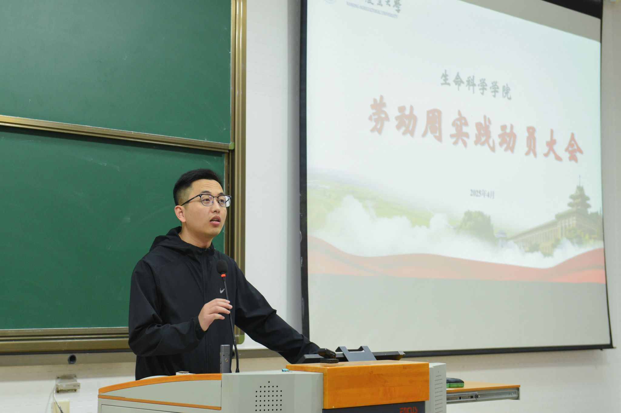 为进一步弘扬耕读精神,培养学生的劳动观念和实践能力,4月2日生命科学学院劳动周实践动员大会于教学楼C401顺利举行。党委副书记阙立刚、教学秘书刘园园和辅导员任佳艺以及生命科学学院全体大二学生参与本次大会。本次实践动员大会旨在为同学们介绍劳动周日程安排以及解答同学们对于此次活动的疑惑,为即将开启的劳动周活动拉开序幕。