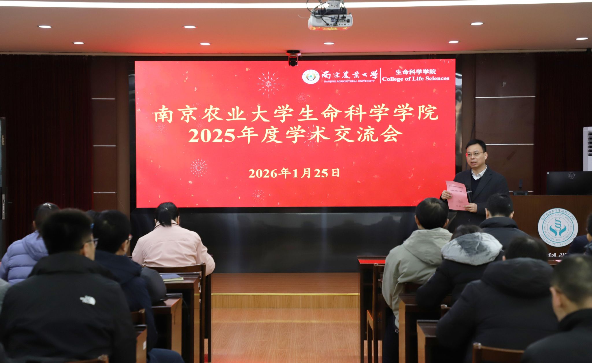 1月25日,南京农业大学生命科学学院召开2025年度学术交流会。生科院全体领导班子成员及在宁教职工参加。年会分为专题报告、学院年度工作总结、学术交流和年度表彰四个部分。